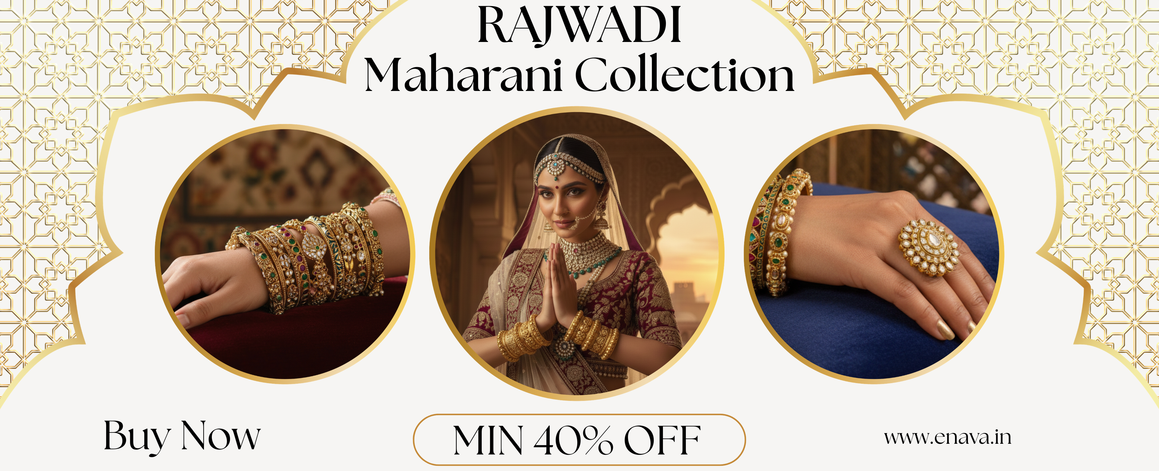 Rajwadi Temple Shri Ram & Hathi Stones Gold Plated Bangles by Enava