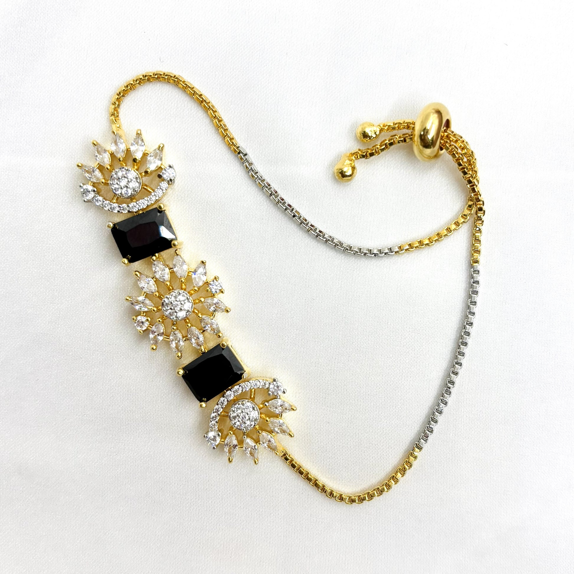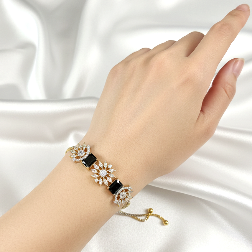 AD CZ Adjustable Black Bracelet with 2 Tone Plating ADBT21005 By Enava