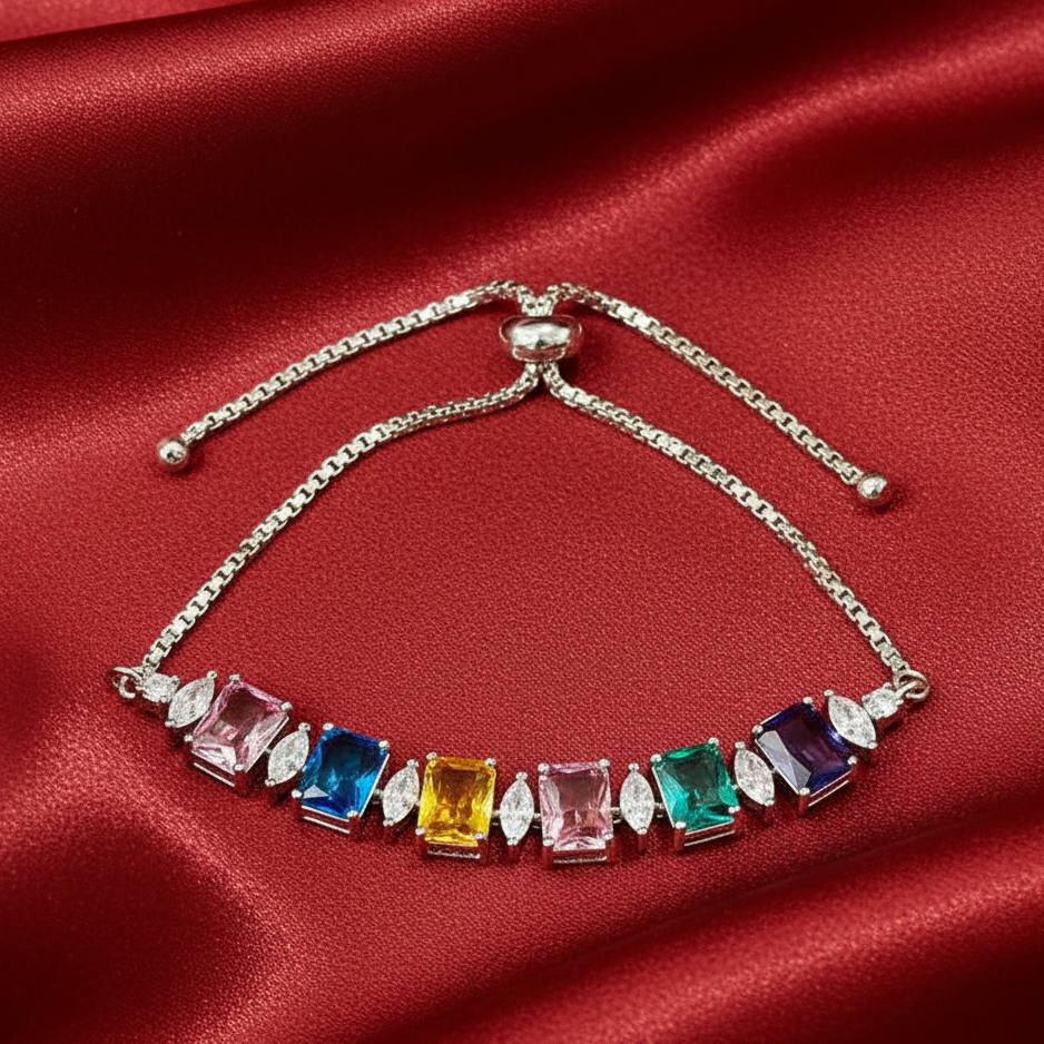 AD CZ Adjustable Multi-Color Bracelet with Rhodium Plating ADBT21003 By Enava