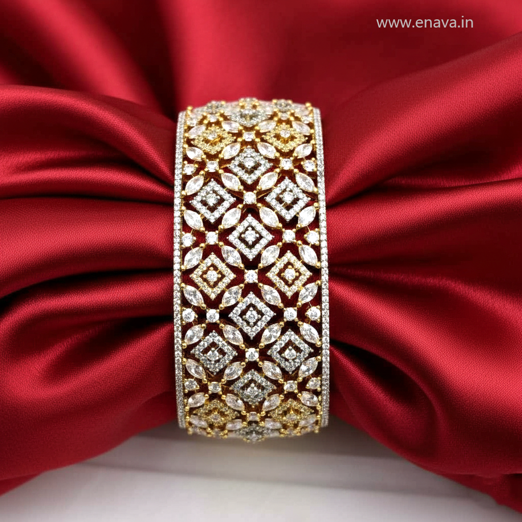 AD CZ Openable Stone Kada with golden Plating ADBT21008 By Enava