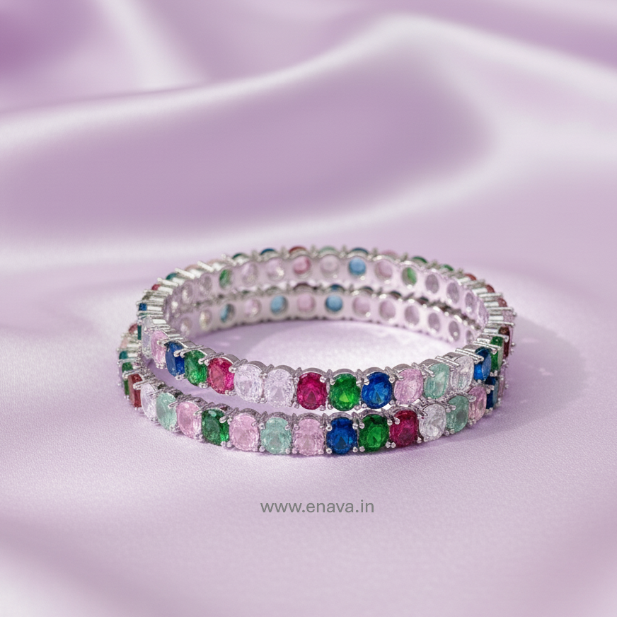 Sparkle in style with these dazzling CZ multicolor stone bangles that bring the party to your wrist! Perfect for adding a pop of color to any outfit, whether you're heading to celebrations or just want to brighten your everyday look.